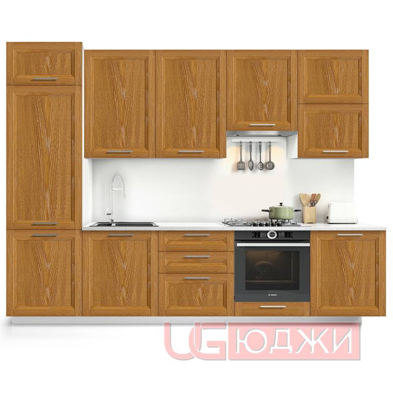 Фасады Неоклассика изготавливаются на основе МДФ 18мм, покрытая современной ПВХ плёнкой (Экошпон) с глубокой текстурой натурального дерева и характерными тактильными ощущениями.