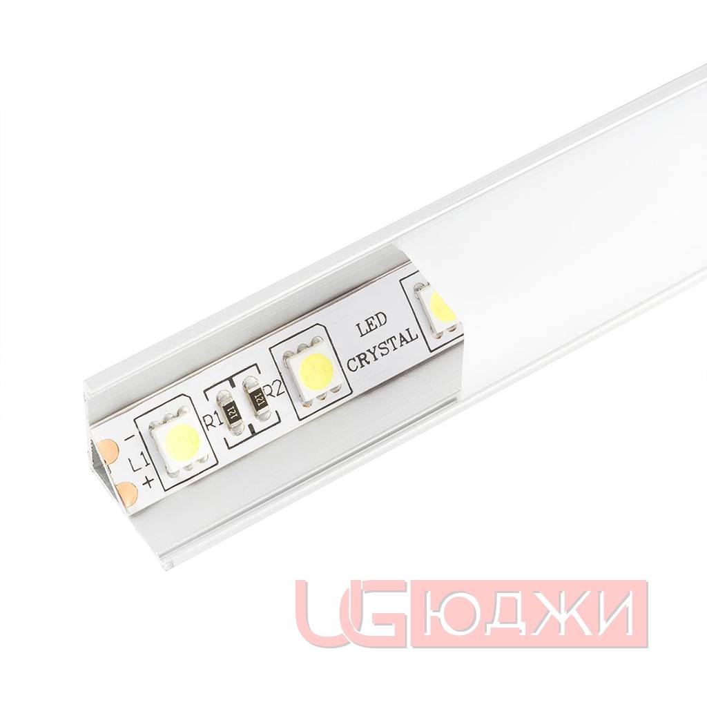 Профиль алюминиевый 16х16мм L-2м, угловой с заглушками и крепежом